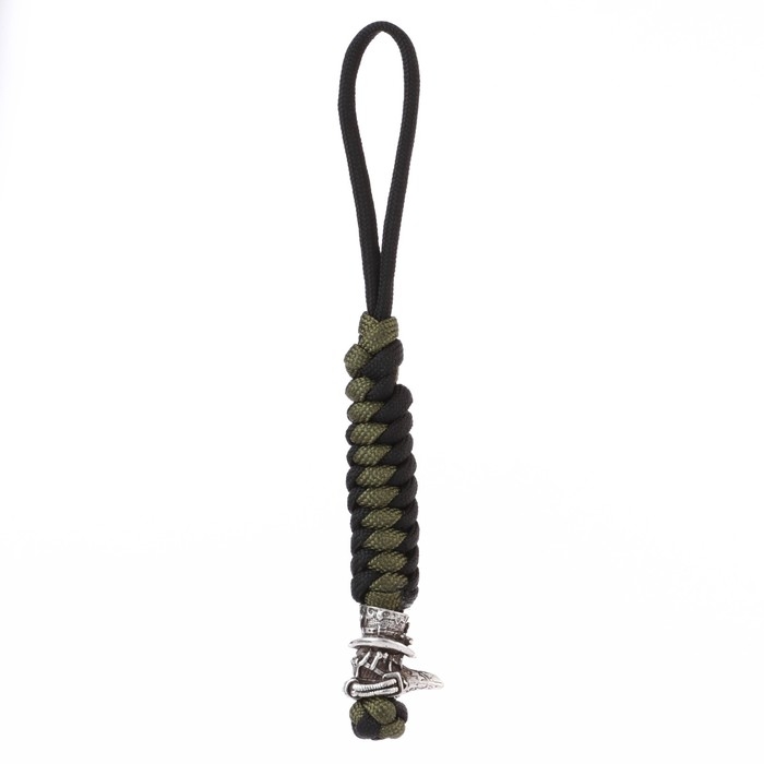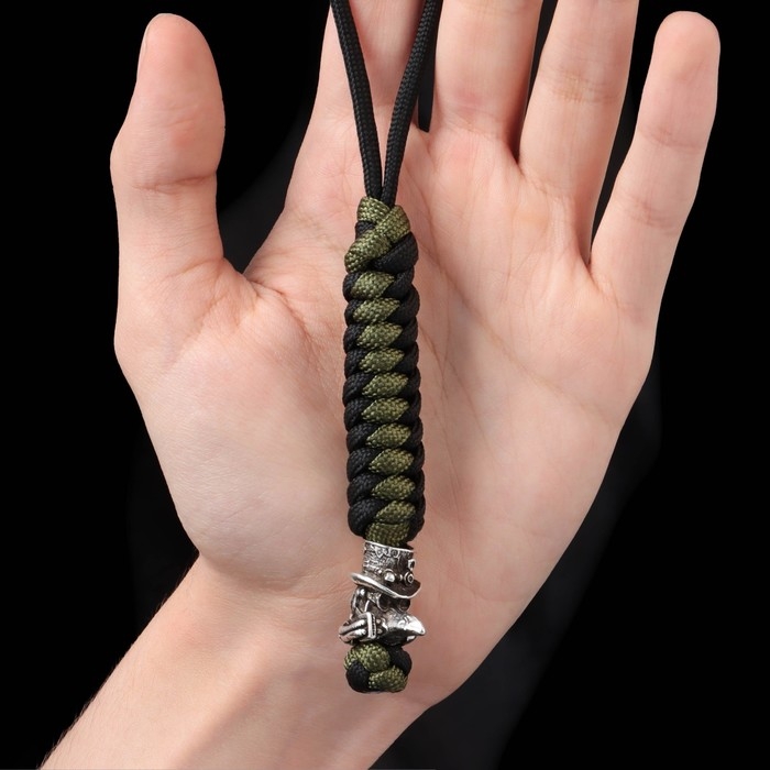 Брелок - темляк для ножа "Чумной доктор" из паракорда, черно-зеленый, 16 см