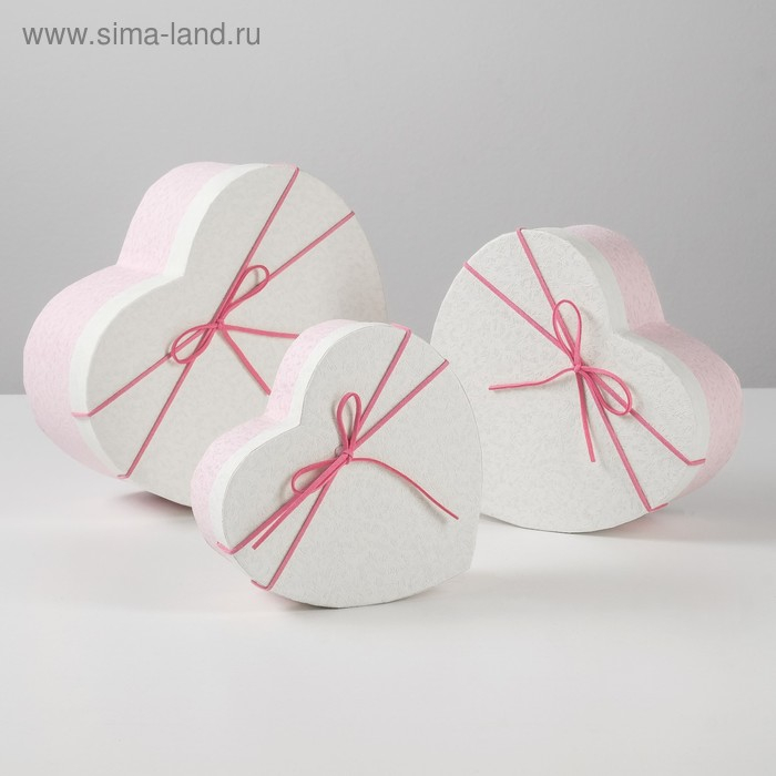 Набор коробок 3 в 1 сердца, розовый-белый, 21 х 19 х 9 - 15.5 х 14 х 6 см
