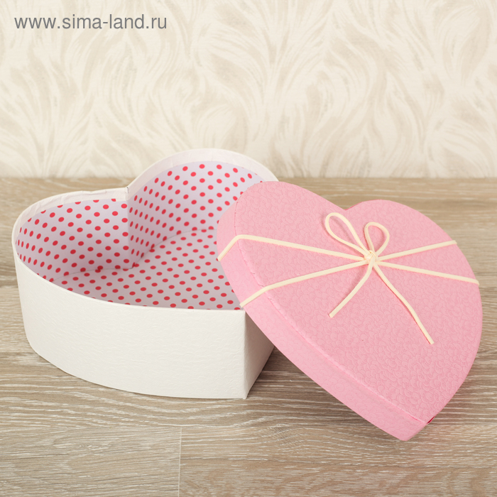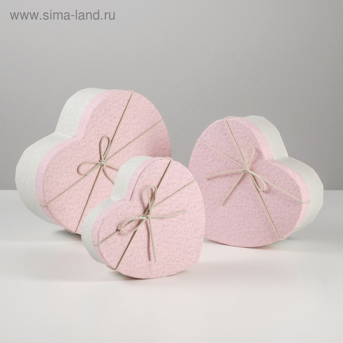 Набор коробок 3 в 1 сердца, белый-розовый, 21 х 19 х 9 - 15.5 х 14 х 6 см