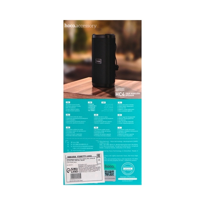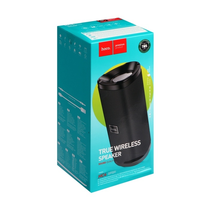 Портативная колонка Hoco HC4, 10 Вт, ВТ 5.0, FM, AUX, 1500 мАч, чёрная