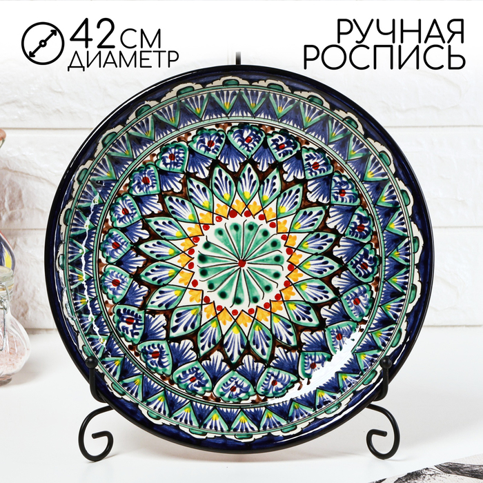 Ляган Риштанская Керамика "Узоры", 25 см, синий, микс