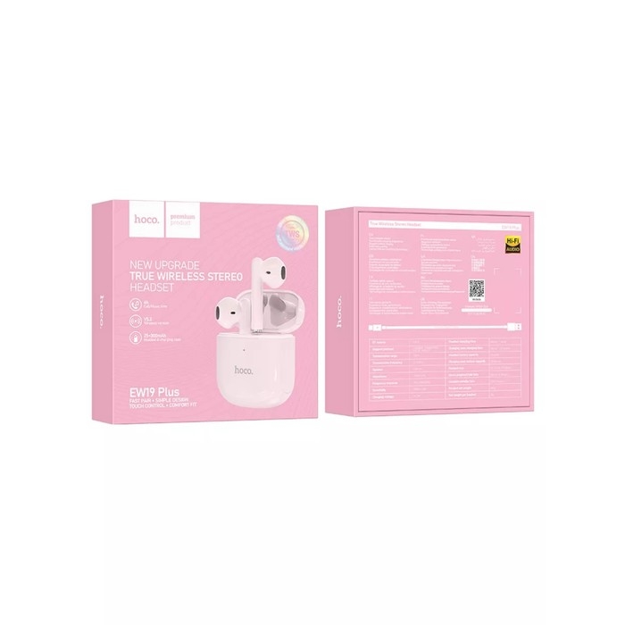 Наушники Hoco EW19, TWS, беспроводные, вкладыши, BT 5.3, 25/300 мАч, розовые