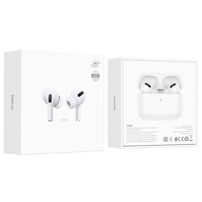 Наушники Hoco EW05, TWS, беспроводные, вакуумные, шумоподавление, BT 5.1, 30/400 мАч, белые