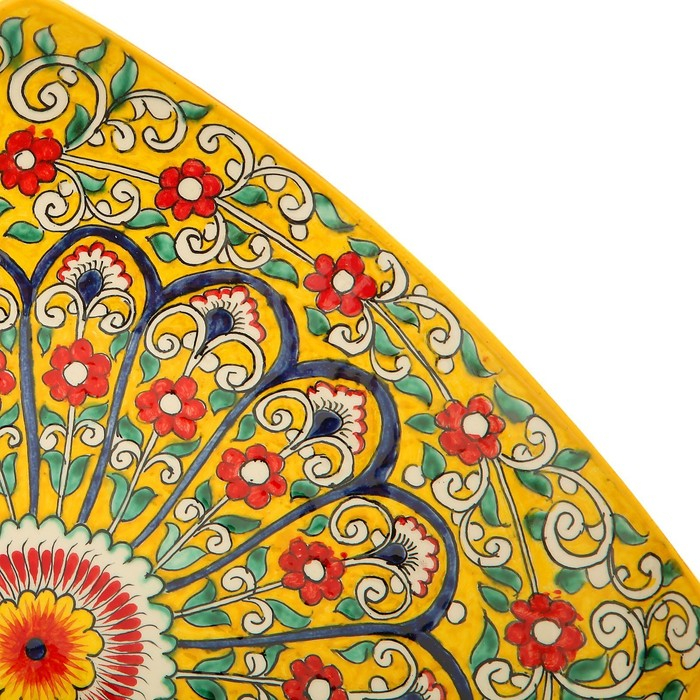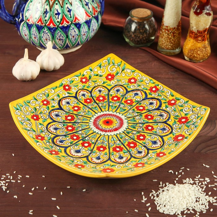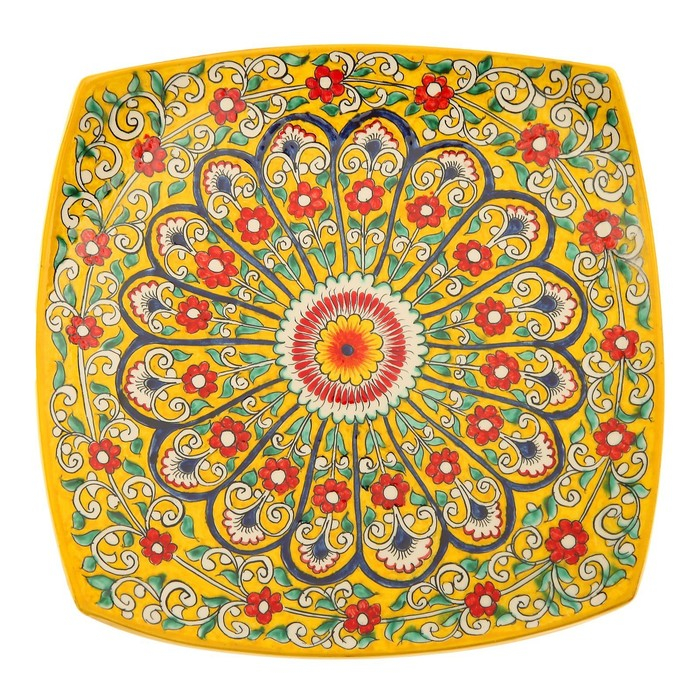Ляган Риштанская Керамика "Цветы", 28 см, квадратный, жёлтый микс