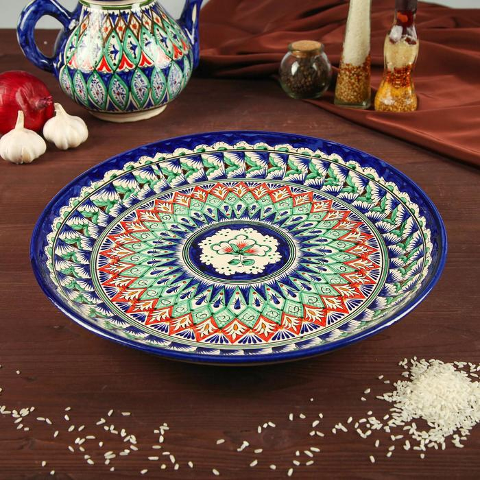 Ляган Риштанская Керамика "Узоры", 36 см, синий