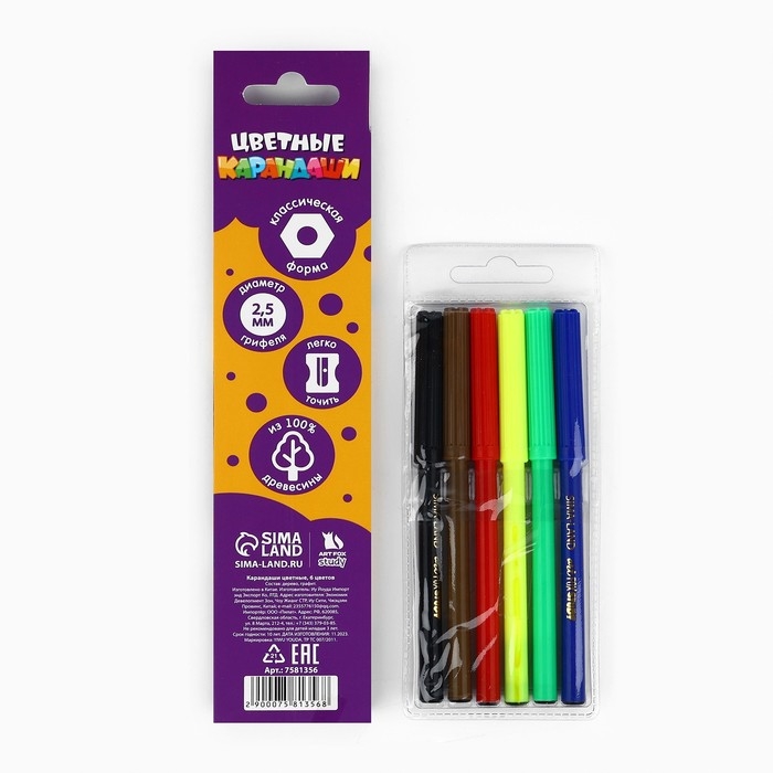 - Цветные карандаши, 6 цветов - 1 шт.;