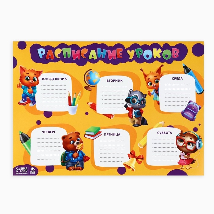 - Расписание уроков, А4 - 1 шт.;
