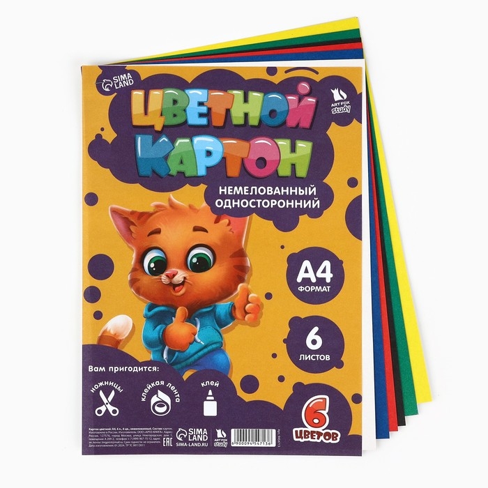- Цветной картон, А4, 6 листов - 1 шт.;