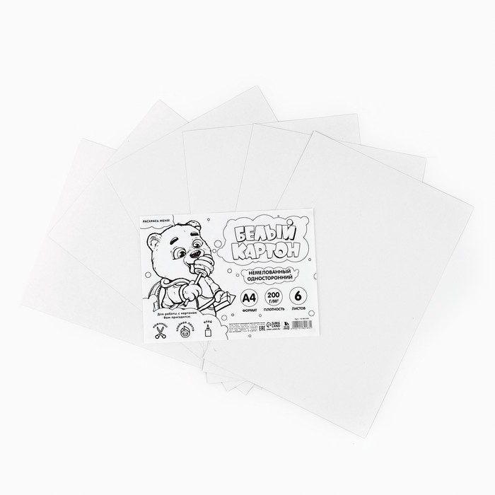 - Белый картон, А4, 6 листов - 1 шт.;