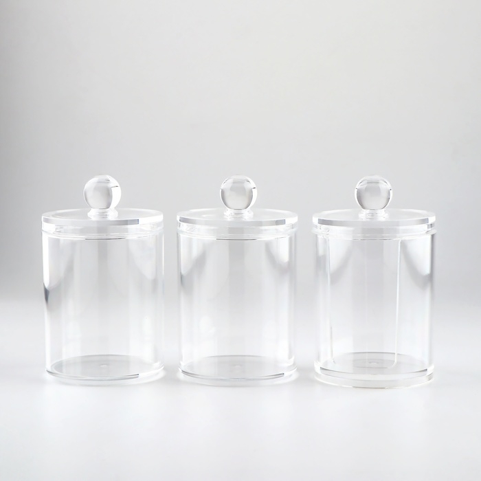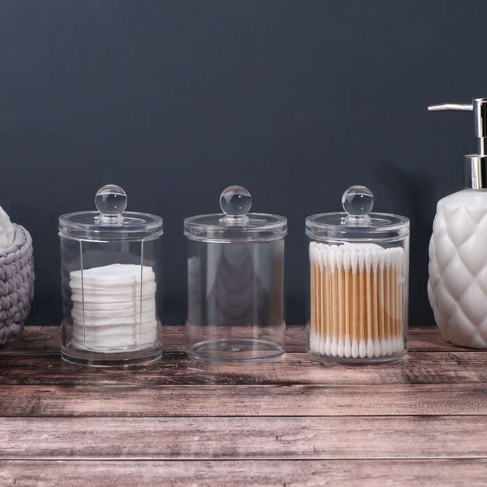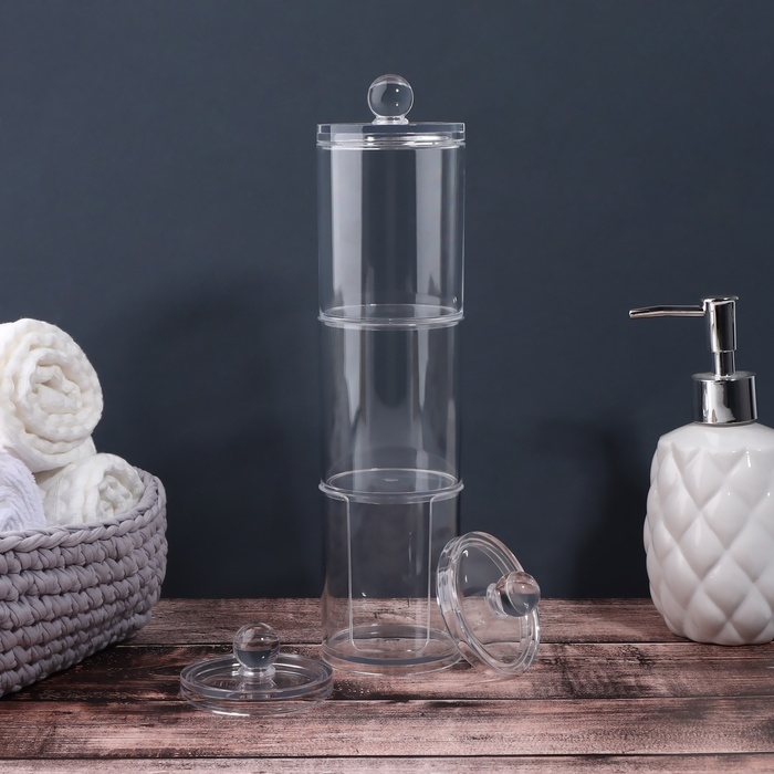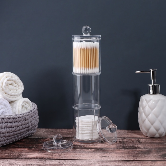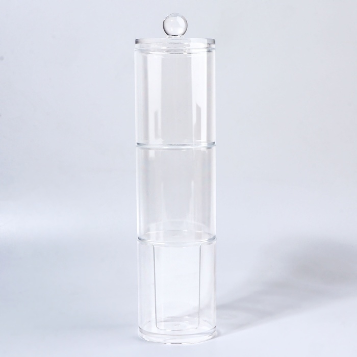 Органайзер для ватных палочек и дисков, с крышкой, 3 секции, 14 × 14 × 13 см, цвет прозрачный
