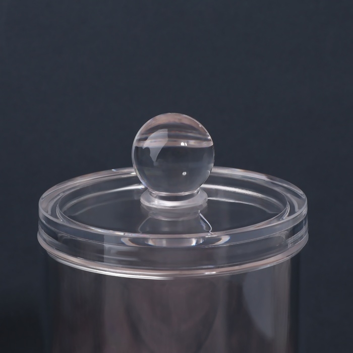 Органайзер для хранения ватных палочек «BAMBOO», с крышкой, d = 9,5 × 9,7 см, в картонной коробке, цвет прозрачный/коричневый