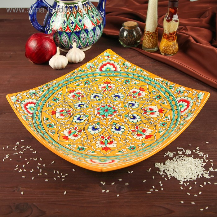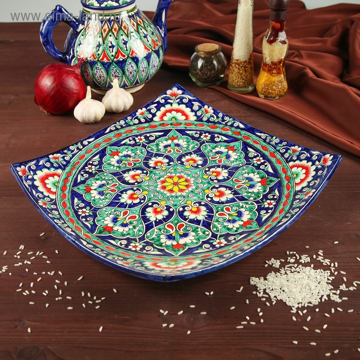 Ляган Риштанская Керамика "Узоры", 32 см, квадратный, синий микс