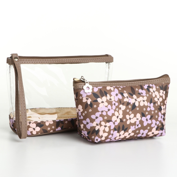 Набор косметичек 2 в 1 на молнии, цвет коричневый