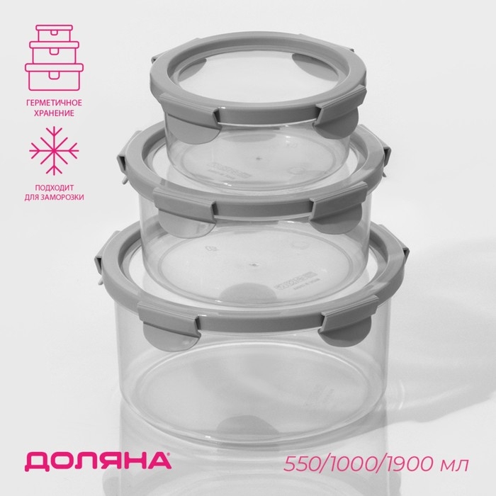 Набор ланч - боксов Доляна, 3 шт, 500 мл, 1 л, 1,9 л, прозрачный