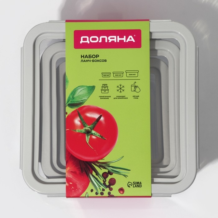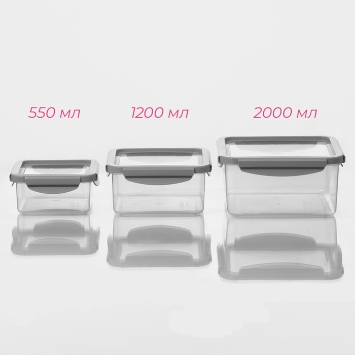 Набор ланч - боксов Доляна, 3 шт, 550 мл, 1,2 л, 2 л, прозрачный