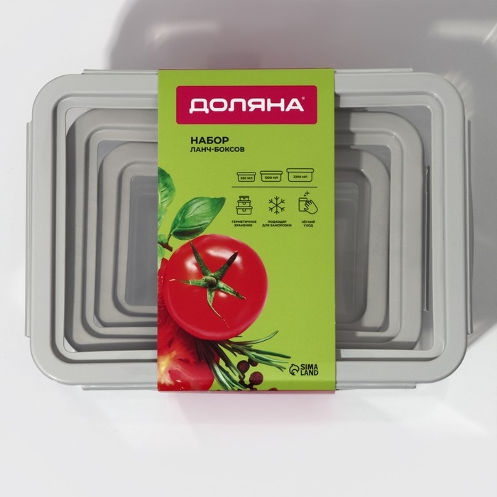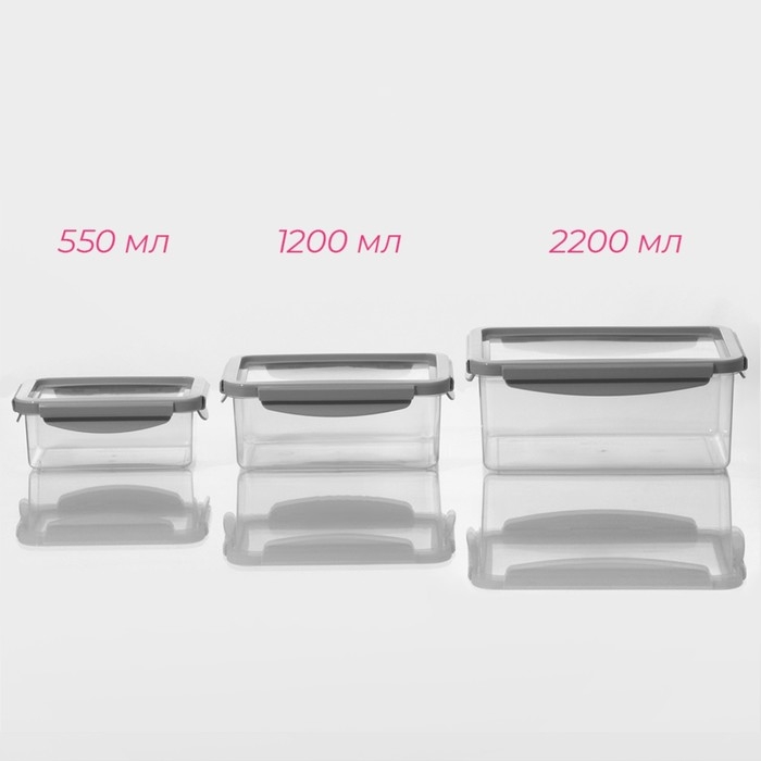 Набор ланч - боксов Доляна, 3 шт, 550 мл, 1,2 л, 2,2 л, прозрачный