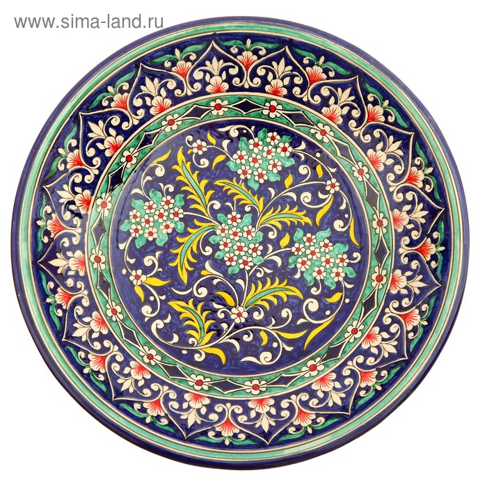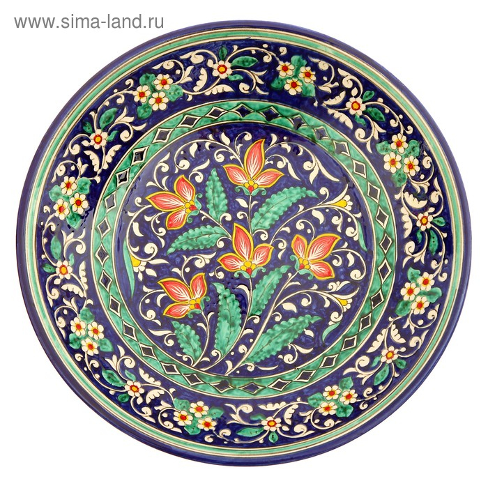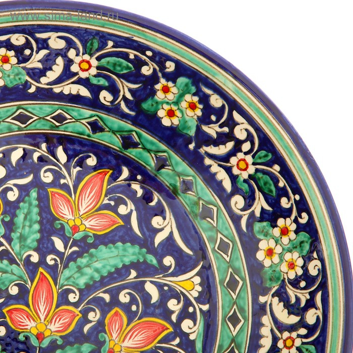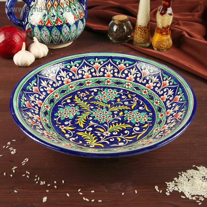 Ляган Риштанская Керамика "Цветы", 33 см, синий микс