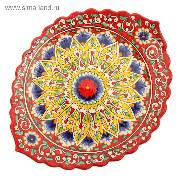 Ляган Риштанская Керамика "Цветы", 31 см, красный, рифлёный