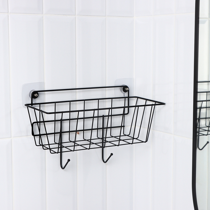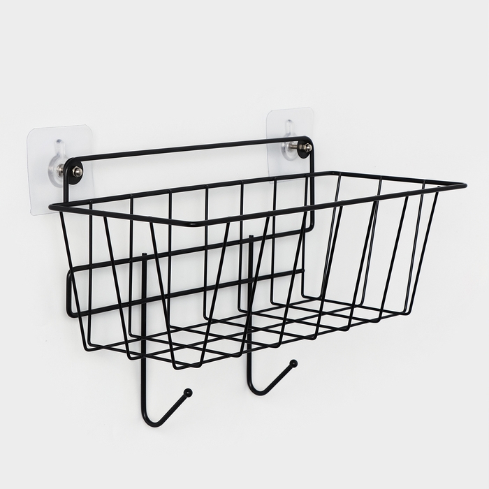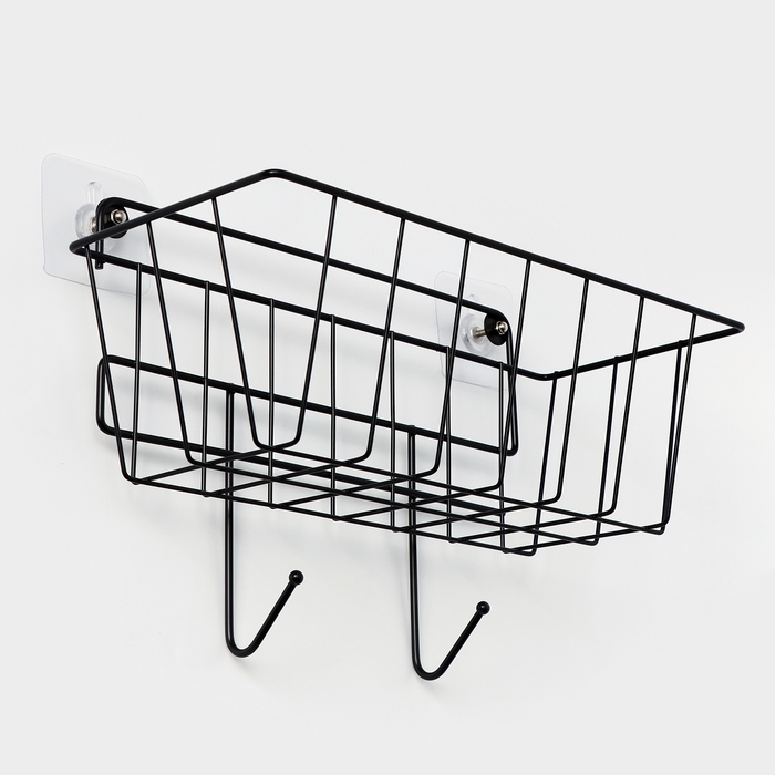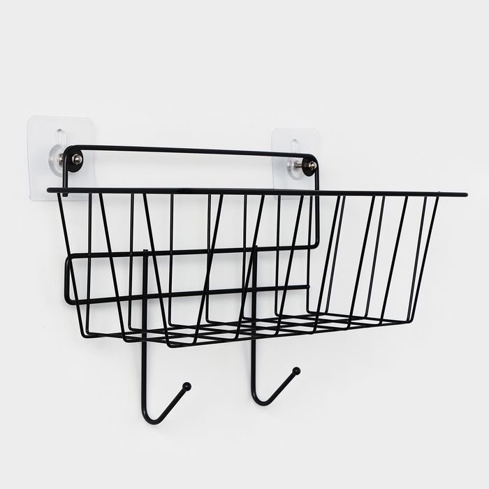 Корзина с 2 крючками, 31,5×13×20 см, цвет черный