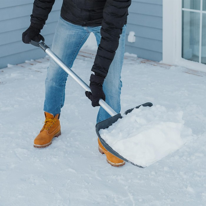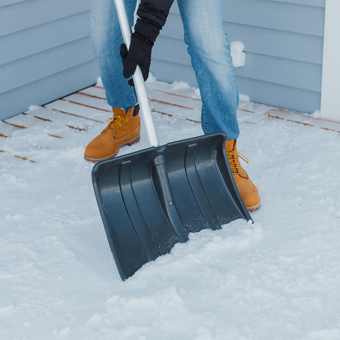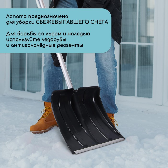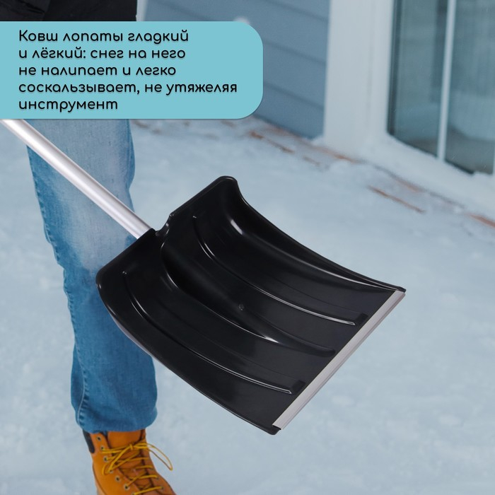 Лопата пластиковая, ковш 380 × 380 мм, морозостойкая, с алюминиевой планкой, алюминиевый черенок, «Снеговик», МИКС