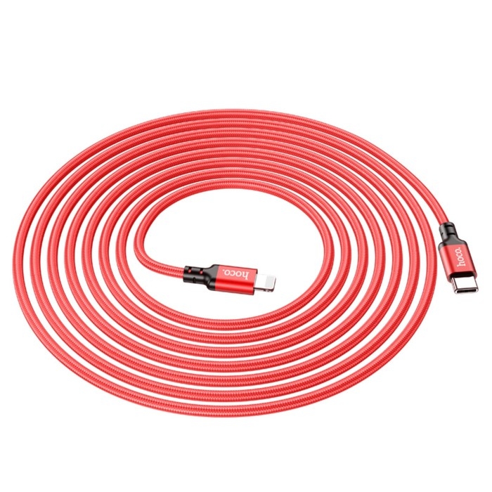 Кабель Hoco X14, Type-C - Lightning, 3.0 А, 3 м, быстрая зарядка, оплётка нейлон, красный