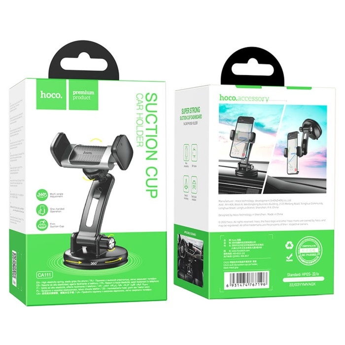 Автомобильный держатель Hoco CA111, для 4.5-7 дюймов, присоска, серый