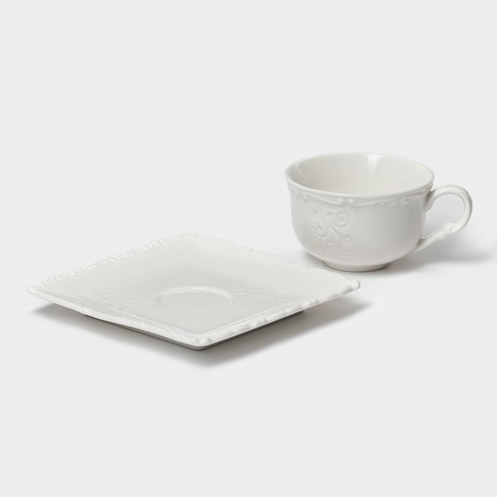- Элегантный дизайн: Кофейная пара выполнена в классическом белом цвете без рисунков, что делает её универсальной для любого интерьера.