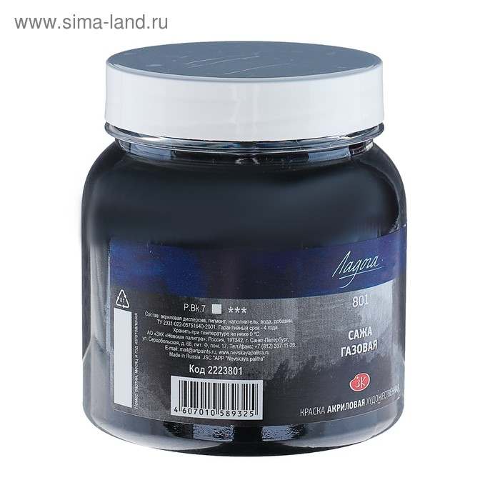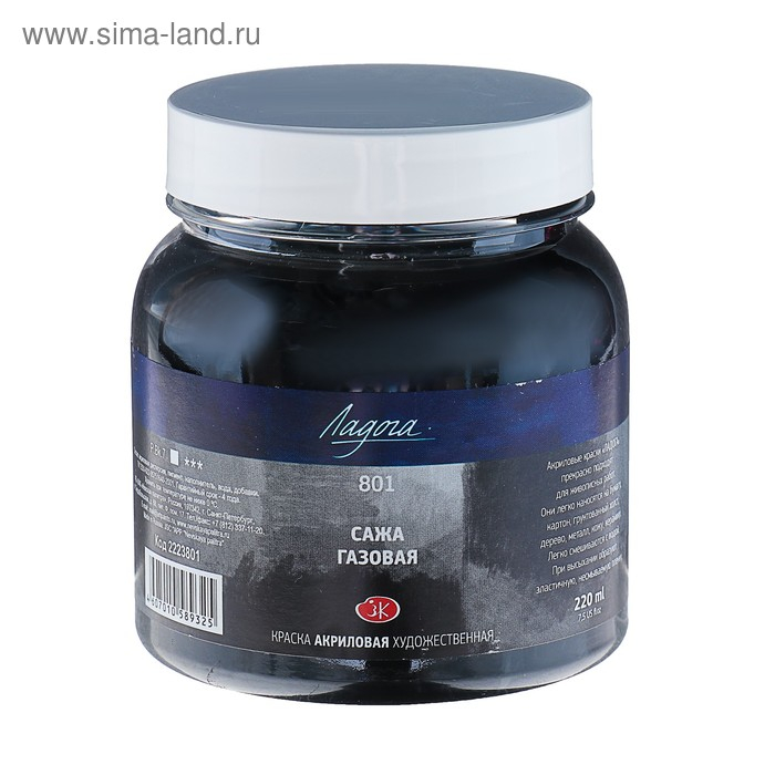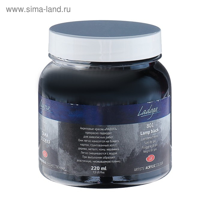 Краска акриловая художественная в банке 220 мл, ЗХК "Ладога", сажа газовая, 2223801