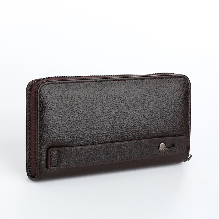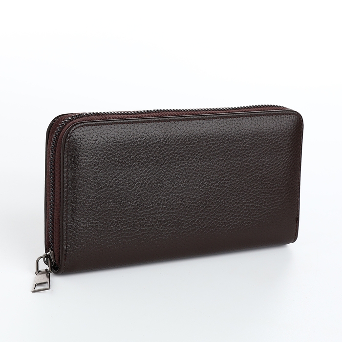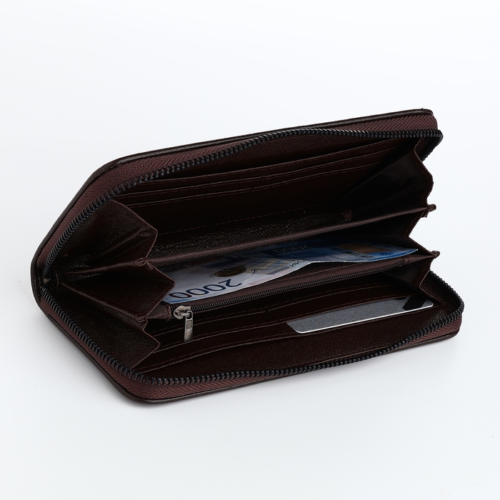 Портмоне-клатч мужской на молнии, отдел для купюр, карт, монет, цвет коричневый