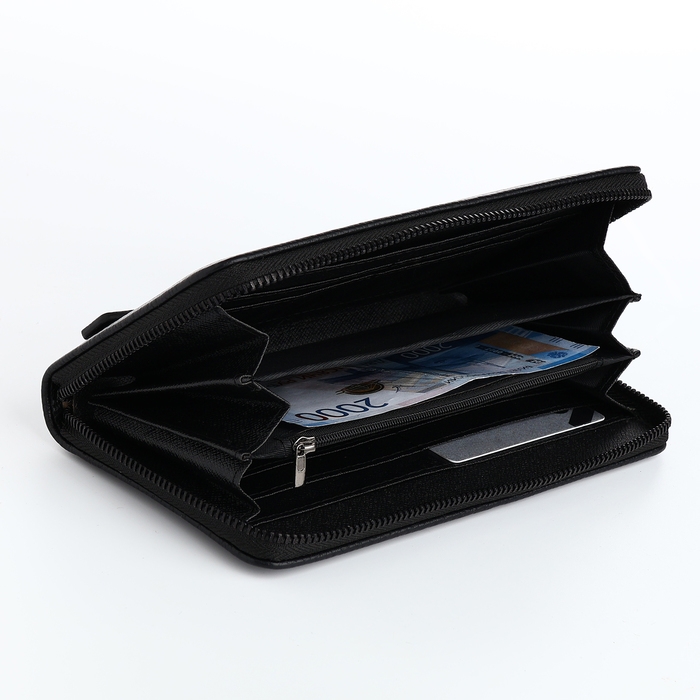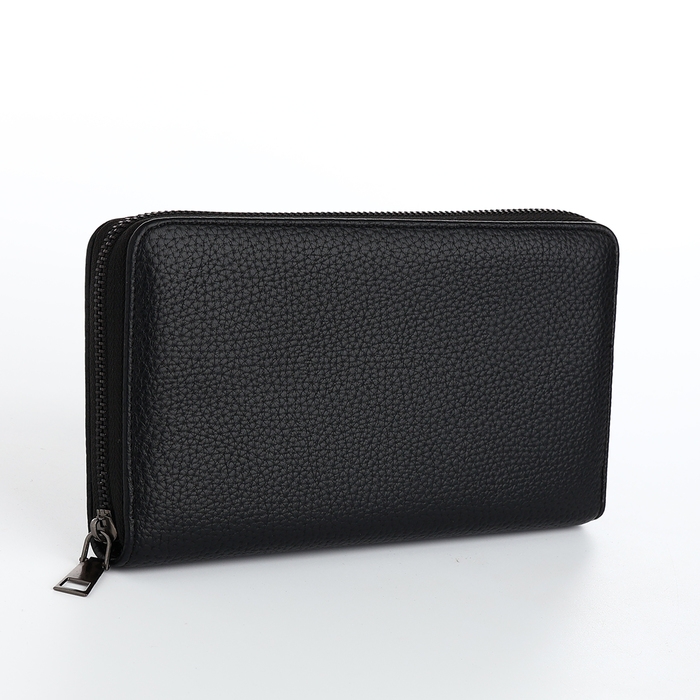 Портмоне-клатч мужской на молнии, отдел для купюр, карт, монет, цвет чёрный