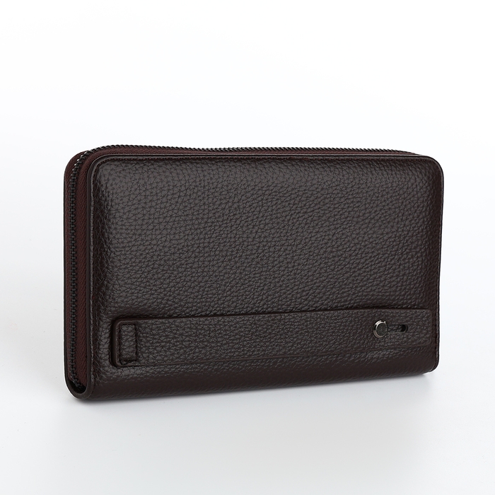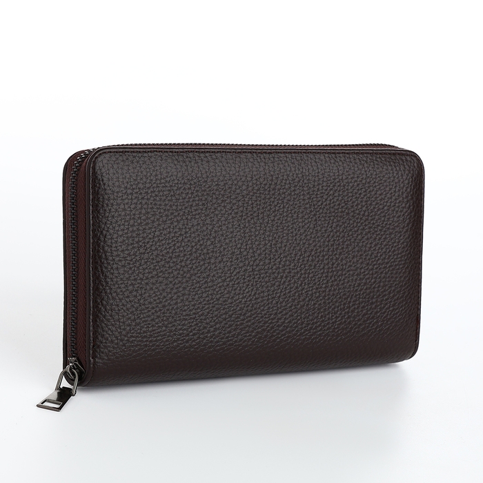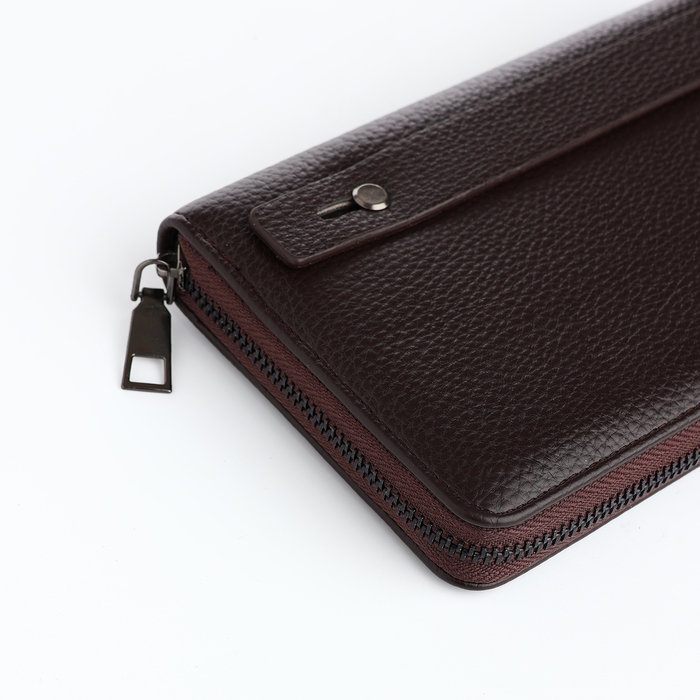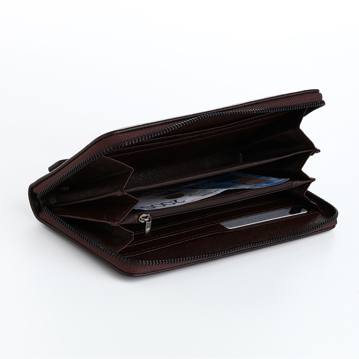 Портмоне-клатч мужской на молнии, отдел для купюр, карт, монет, цвет коричневый