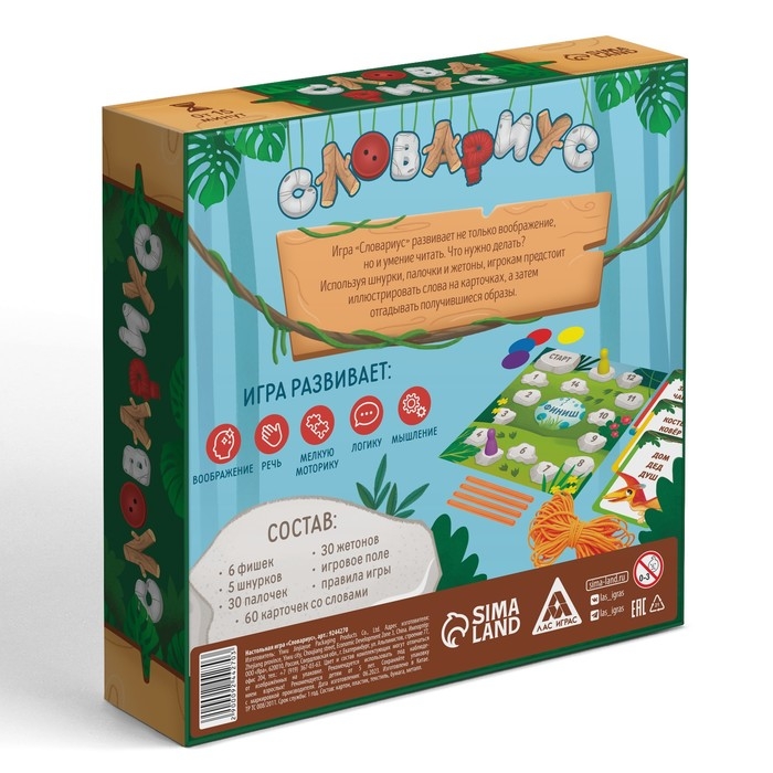 Настольная игра развивающая «Словариус», 60 карт, 30 палочек, 30 жетонов, 5 шнурков, 5+