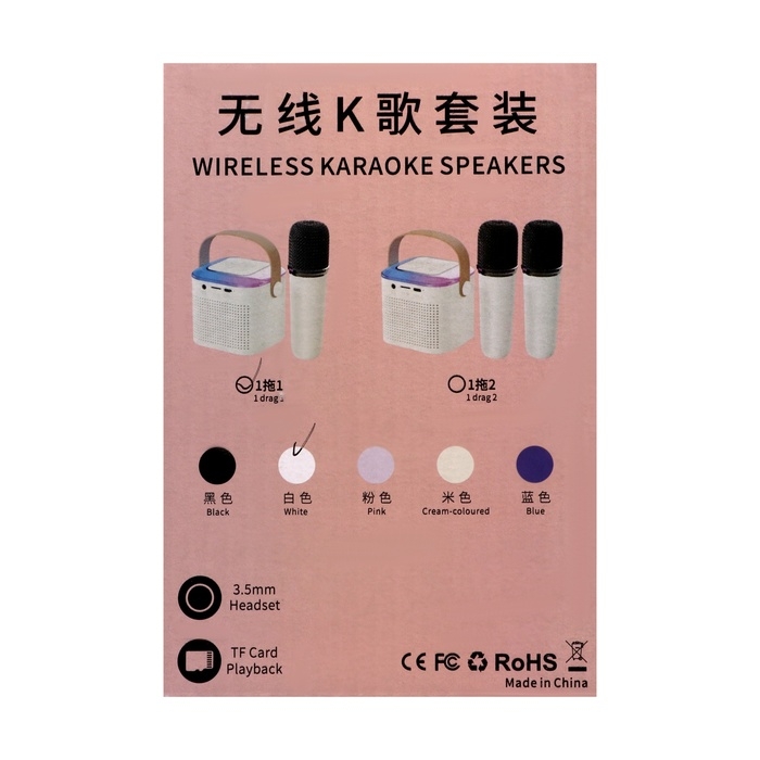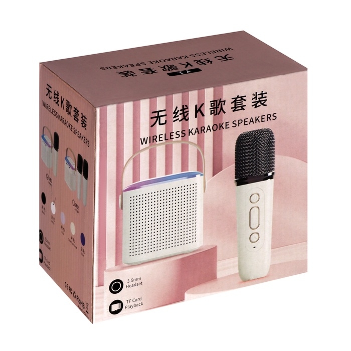 Мини караоке-система Y1, 5 Вт, микрофон, 800/400мАч, Jack 3.5, Type-С, RGB, белая