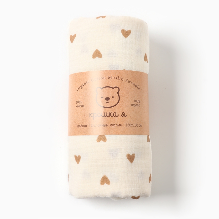 Пеленка двухслойная Крошка Я Heart, 130х100см, муслин,100 % хлопок