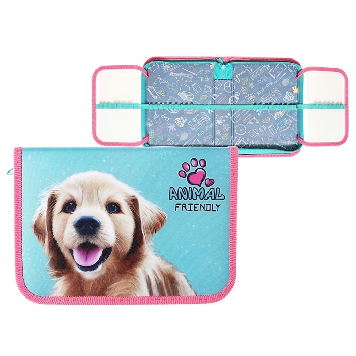 Пенал 1 секция, 140 х 200 х 40 мм, 2 откидные планки, тканевый, ПКТ 09-20-1 "Пушистый друг"