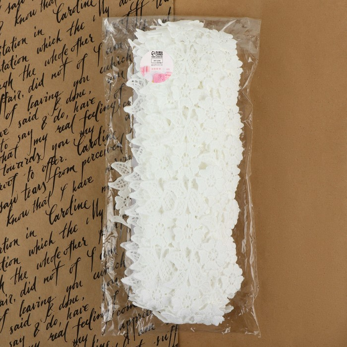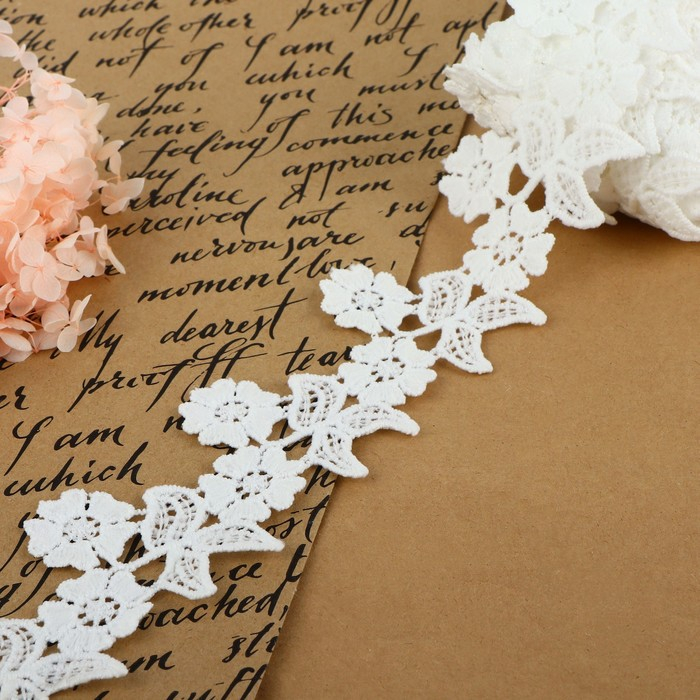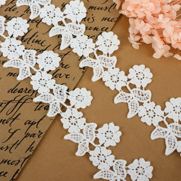 Кружево гипюровое, 50 мм × 14 ± 1 м, цвет белый
