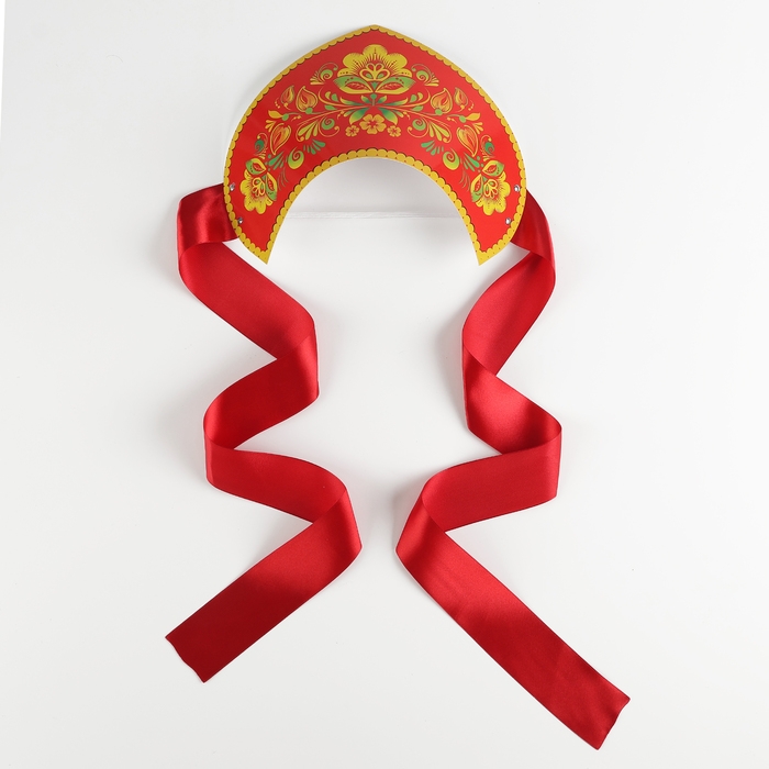 Кокошник «Хохлома принт», красный атлас, ленты МИКС