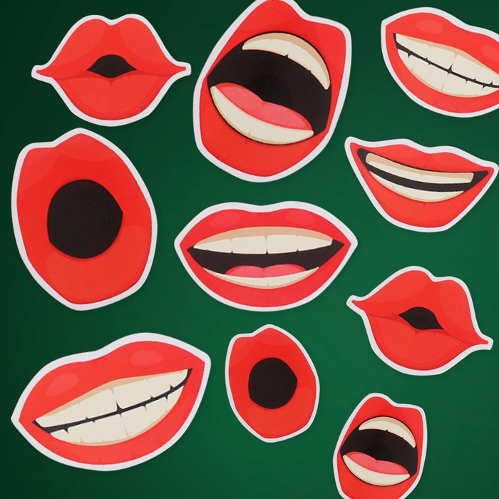 - Карточки с артикуляцией гласных звуков демонстрируют ребёнку положение губ и зубов при произношении звуков.