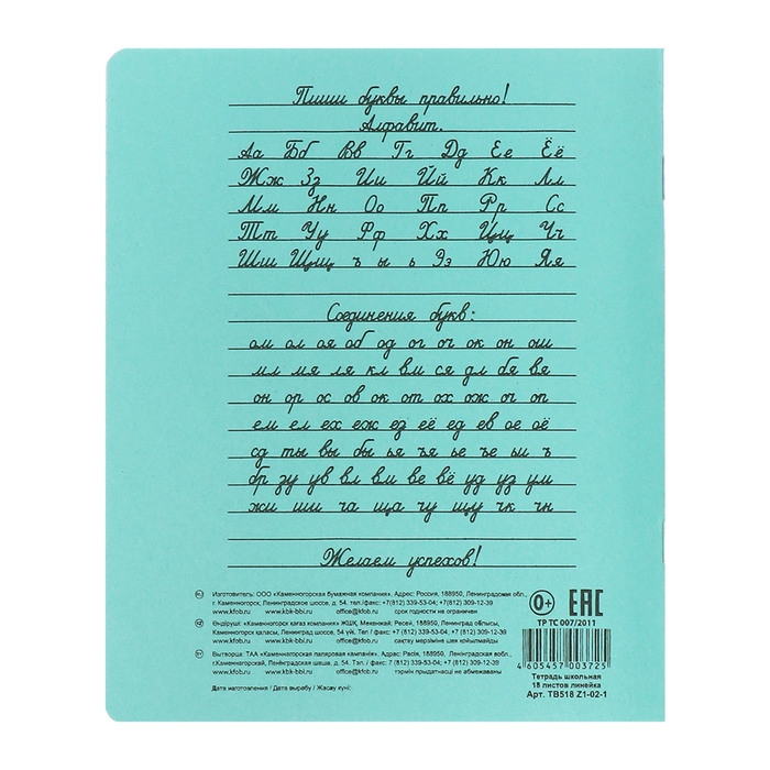 Комплект тетрадей из 25 штук, 18 листов в линию КФОБ "Зелёная обложка", с алфавитом, 60 г/м2, блок офсет, белизна 100%