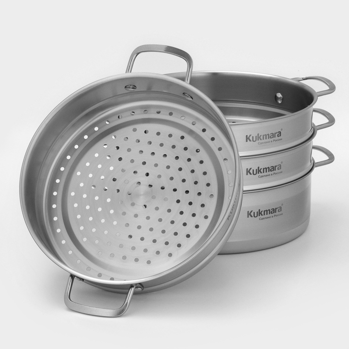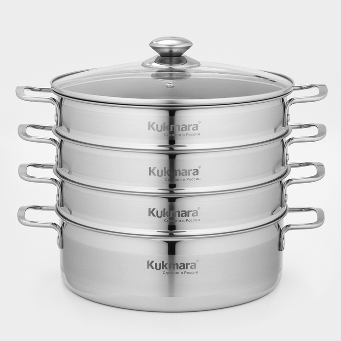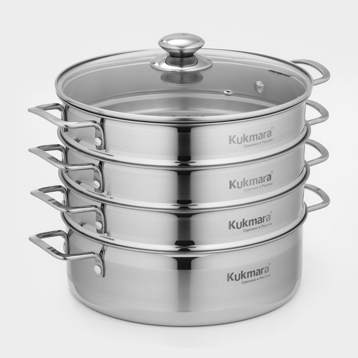 Благодаря многофункциональности мантоварки-пароварки от Kukmara, в меню вашей семьи всегда будет широкий выбор идеально приготовленных блюд. Она станет отличным помощником для любителей национальной кухни, для сторонников здорового питания, а также для практичных покупателей, ценящих в посуде универсальность, высокое качество и долговечность.