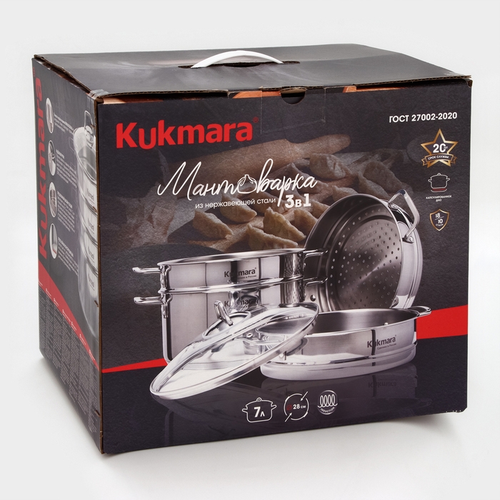 Мантоварка 3в1 с расширенными функциями и стильным внешним видом, каждая деталь которой рассчитана и продумана, гармонично дополняет серию посуды Kukmara из нержавеющей стали . Зеркальный блеск стали в сочетании с брендом ярко подчёркивает высокое качество продукции.