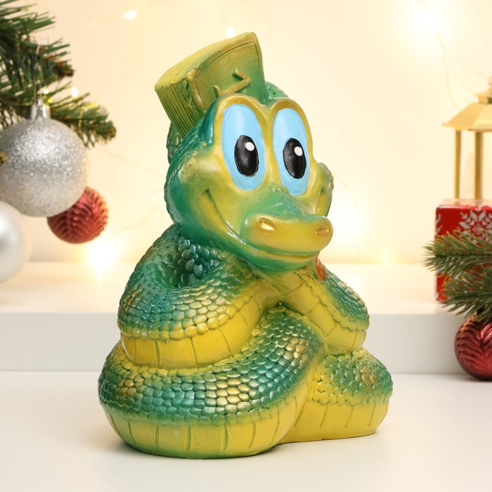 Копилка "Змея с пачкой денег" зеленая, 20см