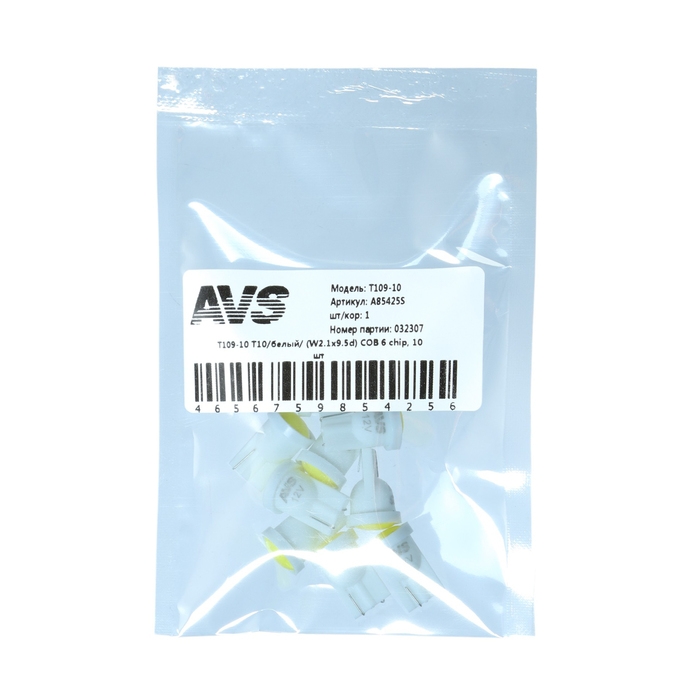 Лампа светодиодная AVS Т109-10 Т10, белый, W2.1x9.5d, COB 6 chip, 10 шт