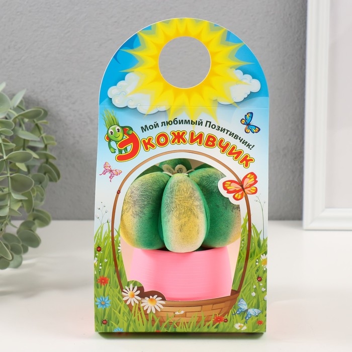 Растущий подарок травка Экоживчик "Кактус Астрофитум" розовый