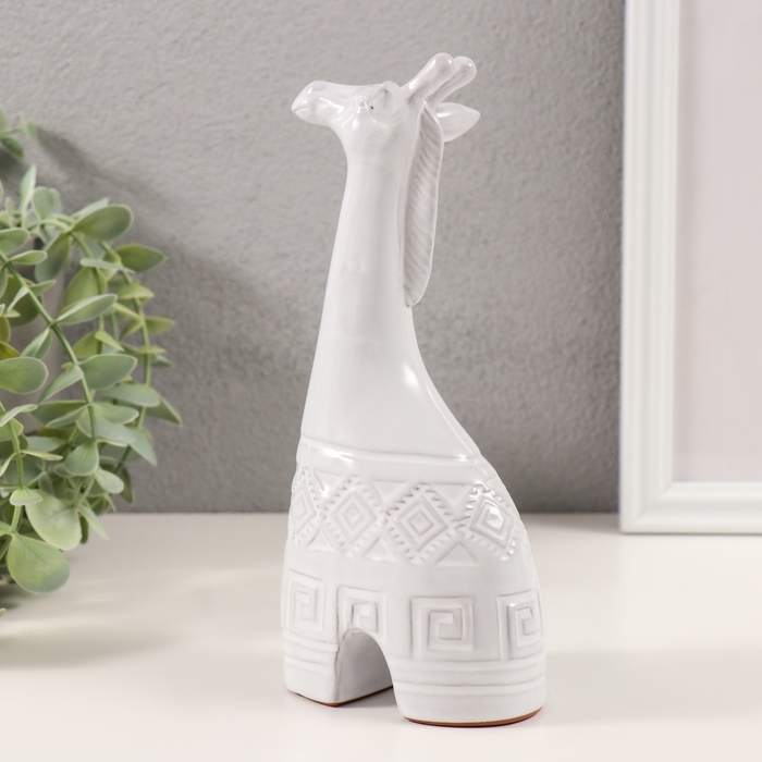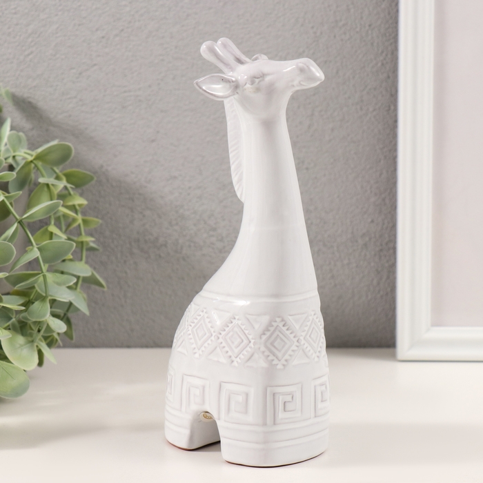 Сувенир керамика "Жираф. Этнические узоры" белый состаренный 8х5х18,5 см