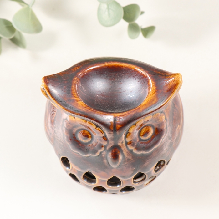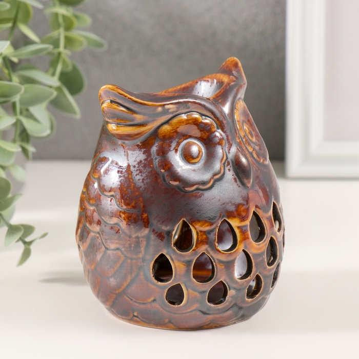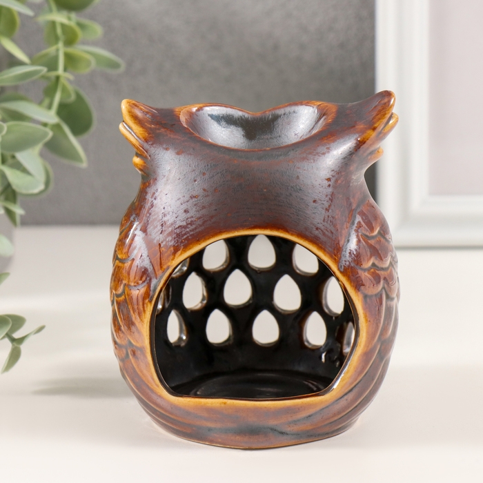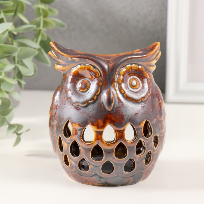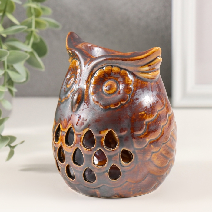Аромалампа керамика "Филин. Капельки" коричневый 7,5х8х10 см