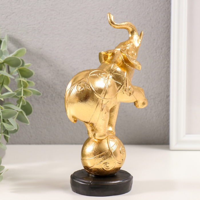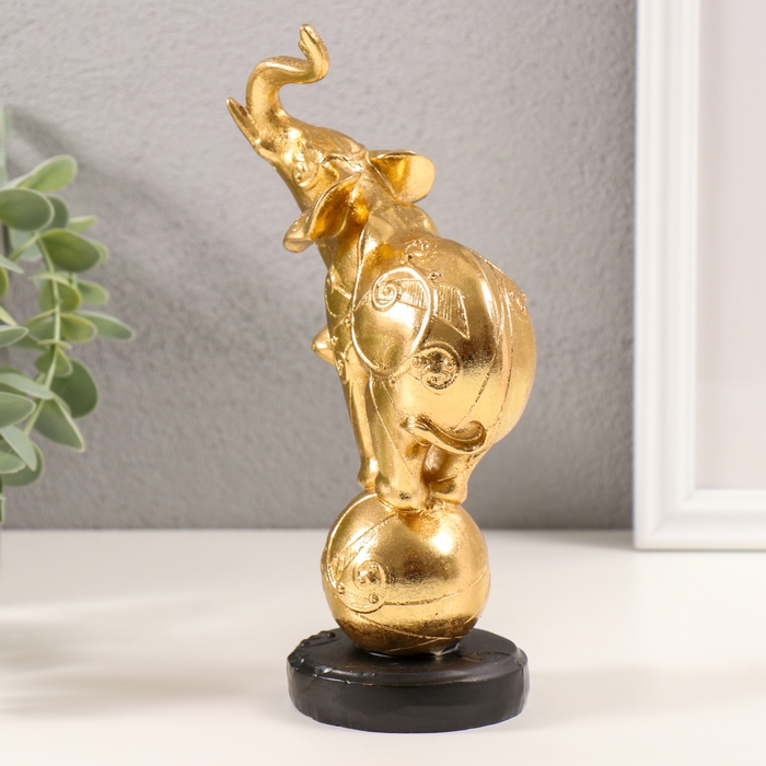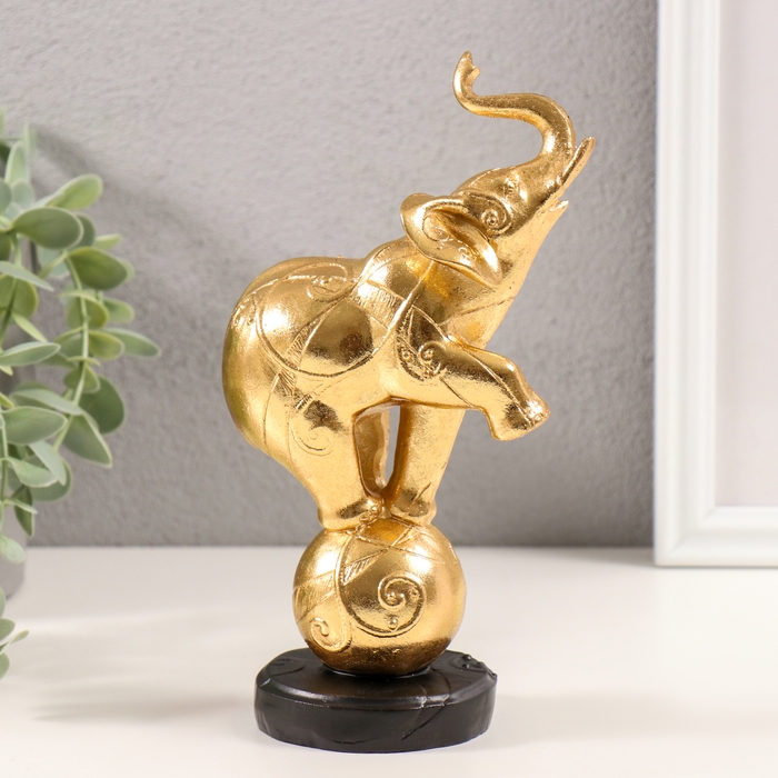 Сувенир полистоун "Слон на шаре с узорами" золото 10х5,5х18,5 см