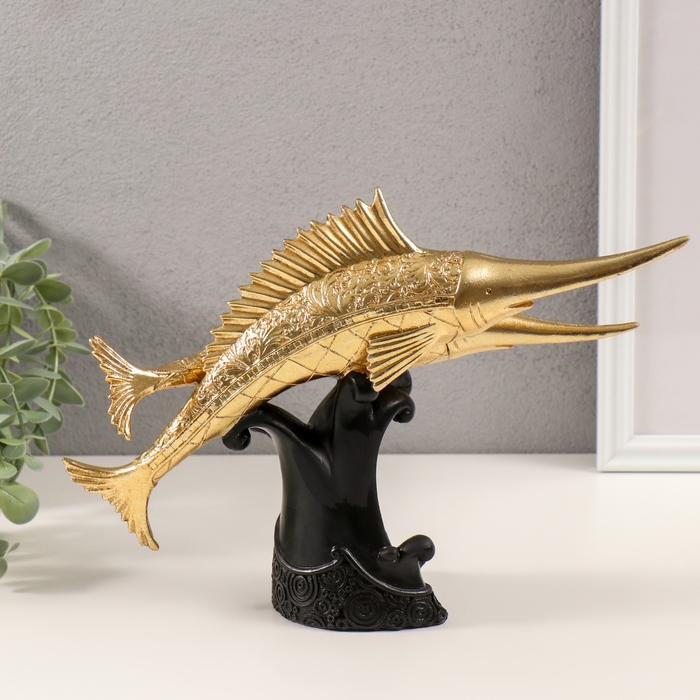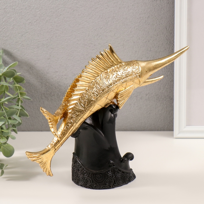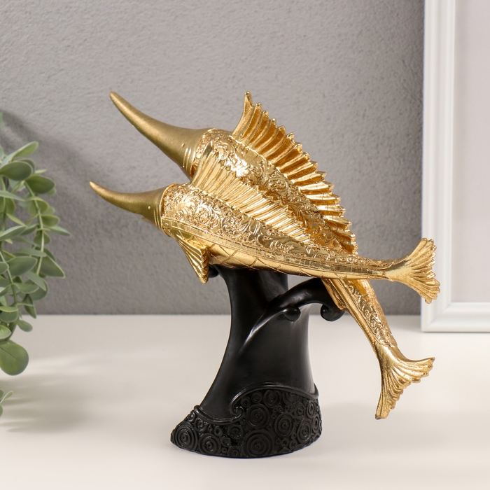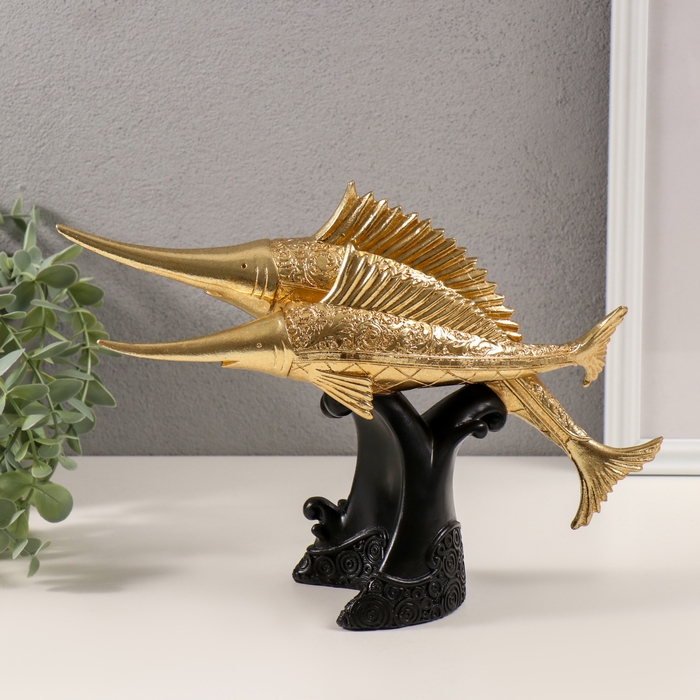 Сувенир полистоун "Меч-рыбы золотые с узорами" 32х8,5х20 см