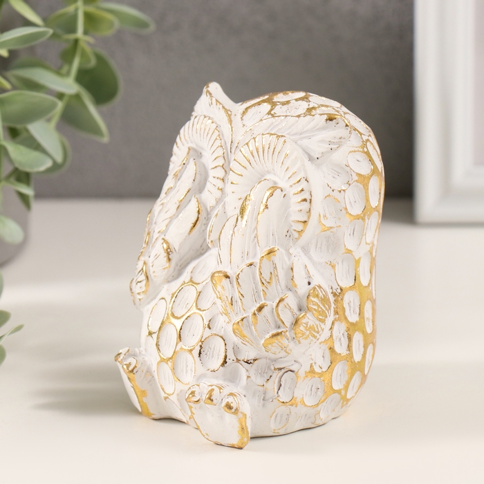 Сувенир полистоун "Совёнок - игра в прятки" белый с золотой патиной 6,5х7х9 см