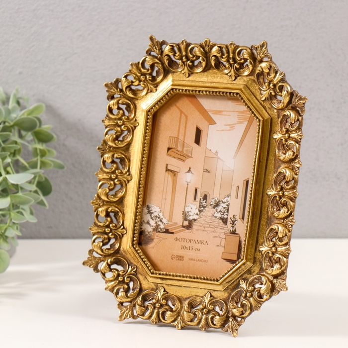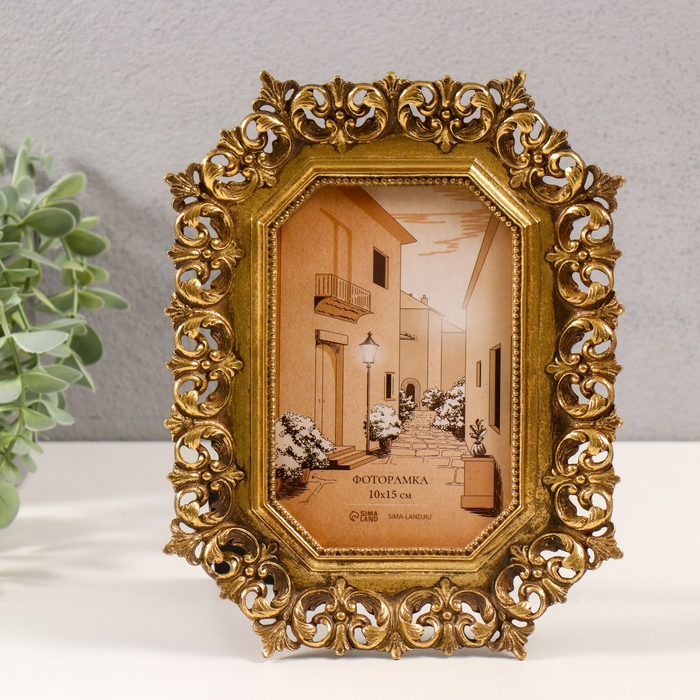 Фоторамка полистоун 10х15 см "Растительные вензели" золото 17х1,8х22 см